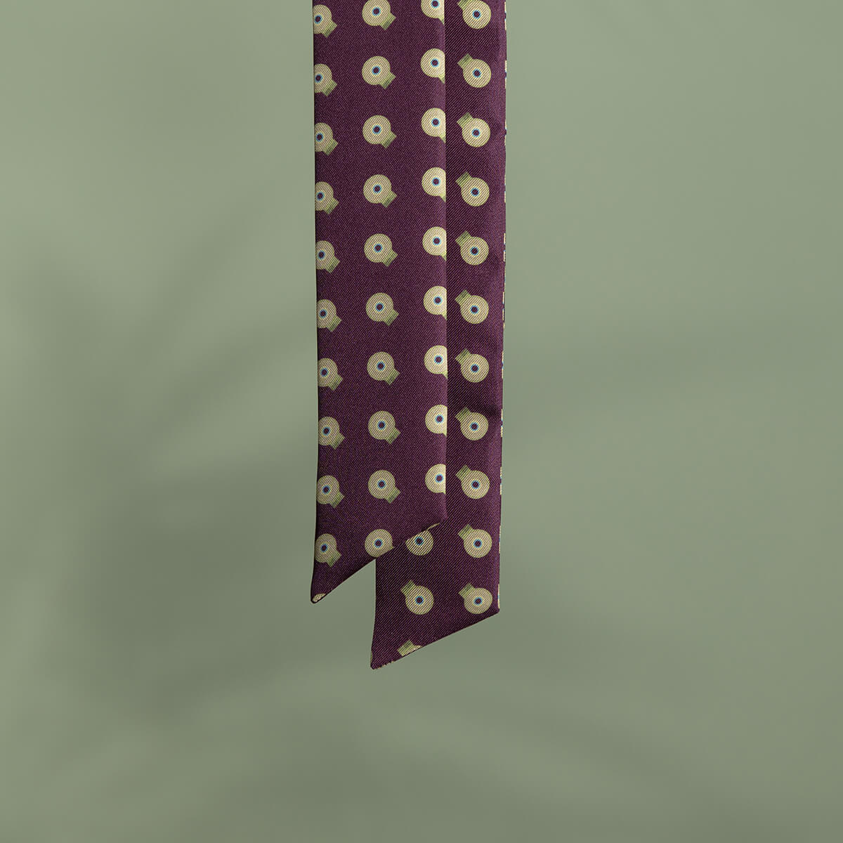 Il nostro twilly in seta è ispirato al Pantheon di Roma e al dettaglio che lo rende unico: il suo oculo. Il twilly, di colore viola/beige, è prodotto secondo la tradizione artigianale della sartoria italiana.